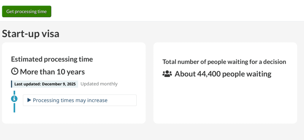 As documented in ImFounder’s analysis of Canada’s startup visa delays and the growing entrepreneur crisis, the SUV inventory has grown far beyond IRCC’s annual processing capacity. Founders applying today are realistically facing waiting timelines exceeding 8–10 years, with some estimates placing full resolution well beyond a decade unless intake caps or processing capacity change.