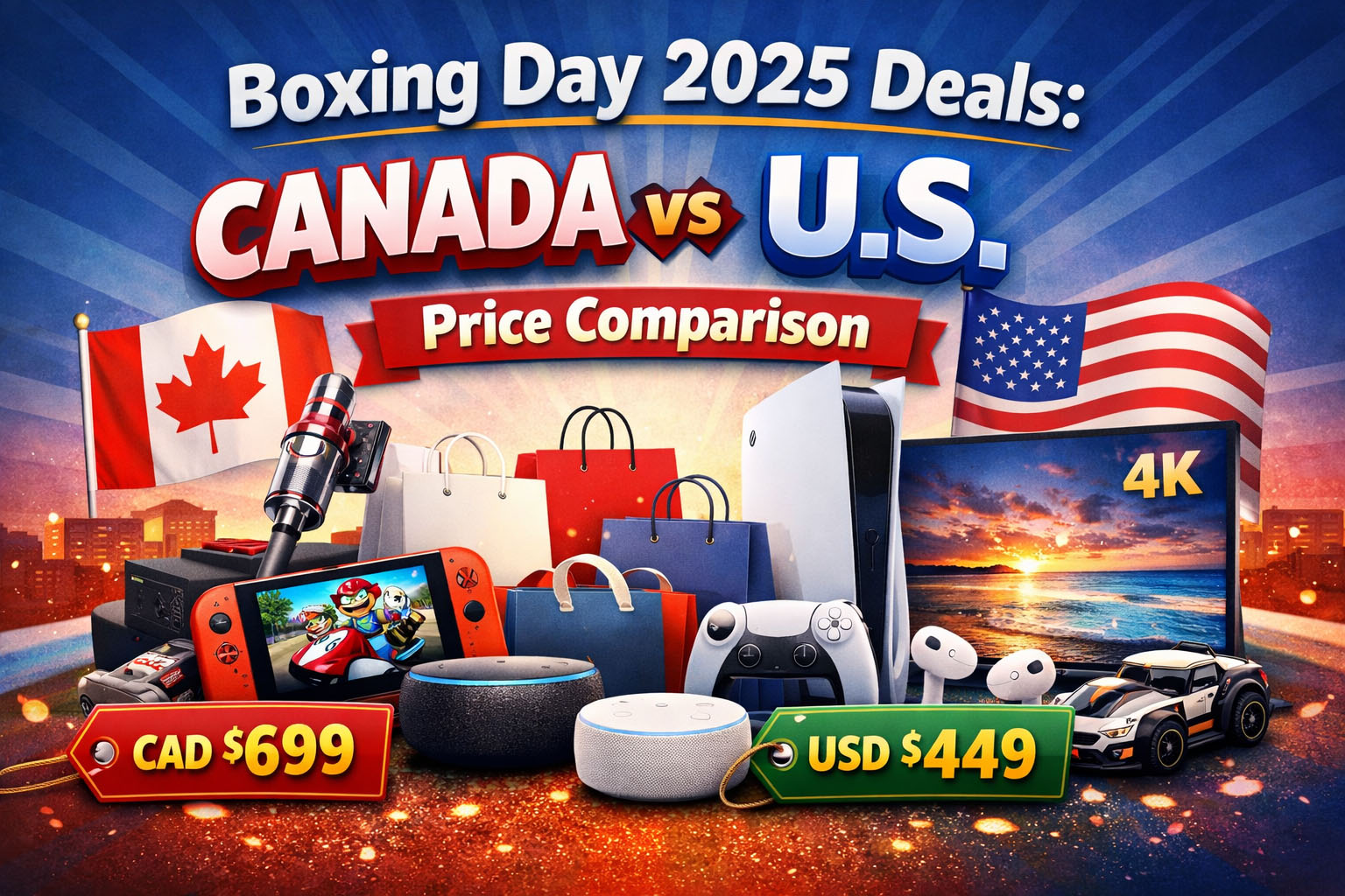 Boxing Day and Boxing Week bring some of the year’s best deals across tech and electronics. Below is a complete price comparison of top products in Canada and the United States — including gaming gear, TVs, tablets, appliances, and toys — with direct Buy links so you can shop instantly.