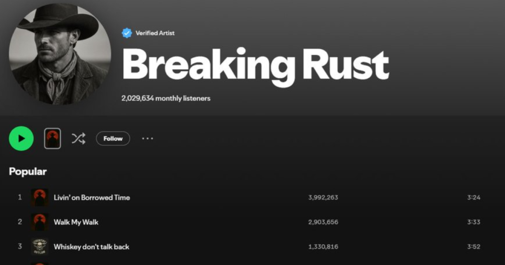 Breaking Rust, an AI-generated country music project, made headlines when its song “Walk My Walk” topped Billboard’s Country Digital Song Sales chart. This marked one of the first times an AI-created artist achieved measurable commercial success in a traditional genre.