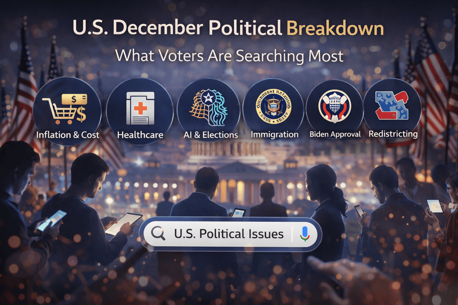 Below, we analyze the latest trends in public opinion — drawing on polls, news reports, and data that illuminate what U.S. voters are searching for most this December.